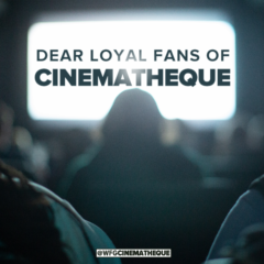 From your valued feedback, we have decided to alter our ticketing policy. From now on, we will make 100% of tickets available in advance for every film shown at Cinematheque. Of course, not all films will sell out, but we encourage you to visit our website, our box office during operational hours (beginning 30 minutes prior to every showtime), or our administrative offices in the basement of Artspace (Mon-Fri 10am-5pm) to purchase your tickets in advance. The last thing we want is for you to plan a night out at Cinematheque and be disappointed that a film is sold out.