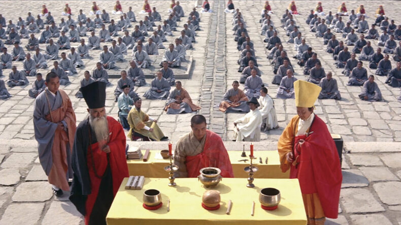 During the Ming Dynasty, a Buddhist abbot charged with protecting the sacred scroll of Tripitaka prepares to name his successor. An aristocrat and a general arrive at his secluded mountaintop monastery promising to help in his search, but are in fact scheming to secure the scroll for themselves. As they set about recommending corrupt successors, rival bands of martial artists lie in wait to steal the precious artifact. Soon, the monastery is transformed into an epic battleground for the scroll, with each player caught in a web of betrayal. Called a “remarkably photographed caper heist [featuring] intriguing battles of wits and minds” (Far East Film Festival), Raining in The Mountain is also the peak of legendary director King Hu’s infusion of Buddhist spiritual principles into the legacy of martial arts cinema.