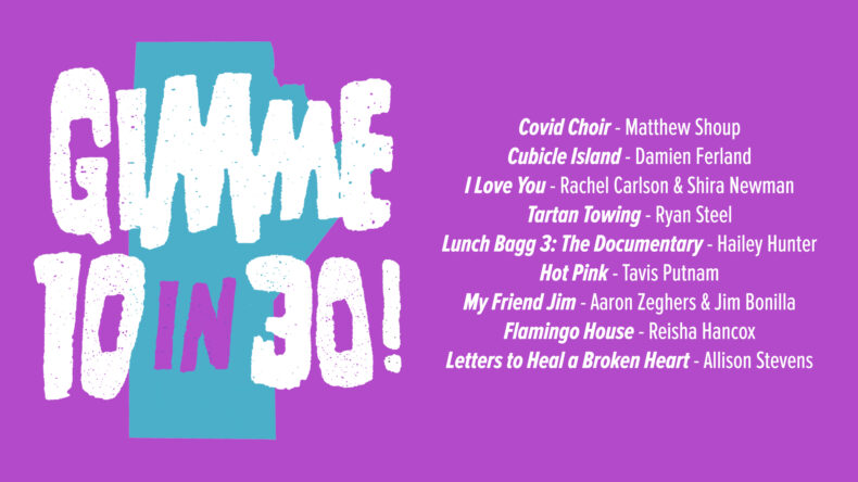 Gimme 10 in 30! is a new documentary incubator challenge wherein 9 participants chosen via random lottery draw were tasked with completing a new documentary film in 30 days. There were no restrictions or parameters to the films created, except they couldn’t be longer than 7 minutes long. Originally conceptualized as a time-based documentary filmmaking challenge, the COVID-19 pandemic had other designs and forced us to extend the challenge, allowing the filmmakers to create their films safely and in line with provincial health restrictions.