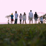 A woman in a mask leads a group of children through an evening of fun and fantasy, crafting masks and projecting animated unicorns onto houses.