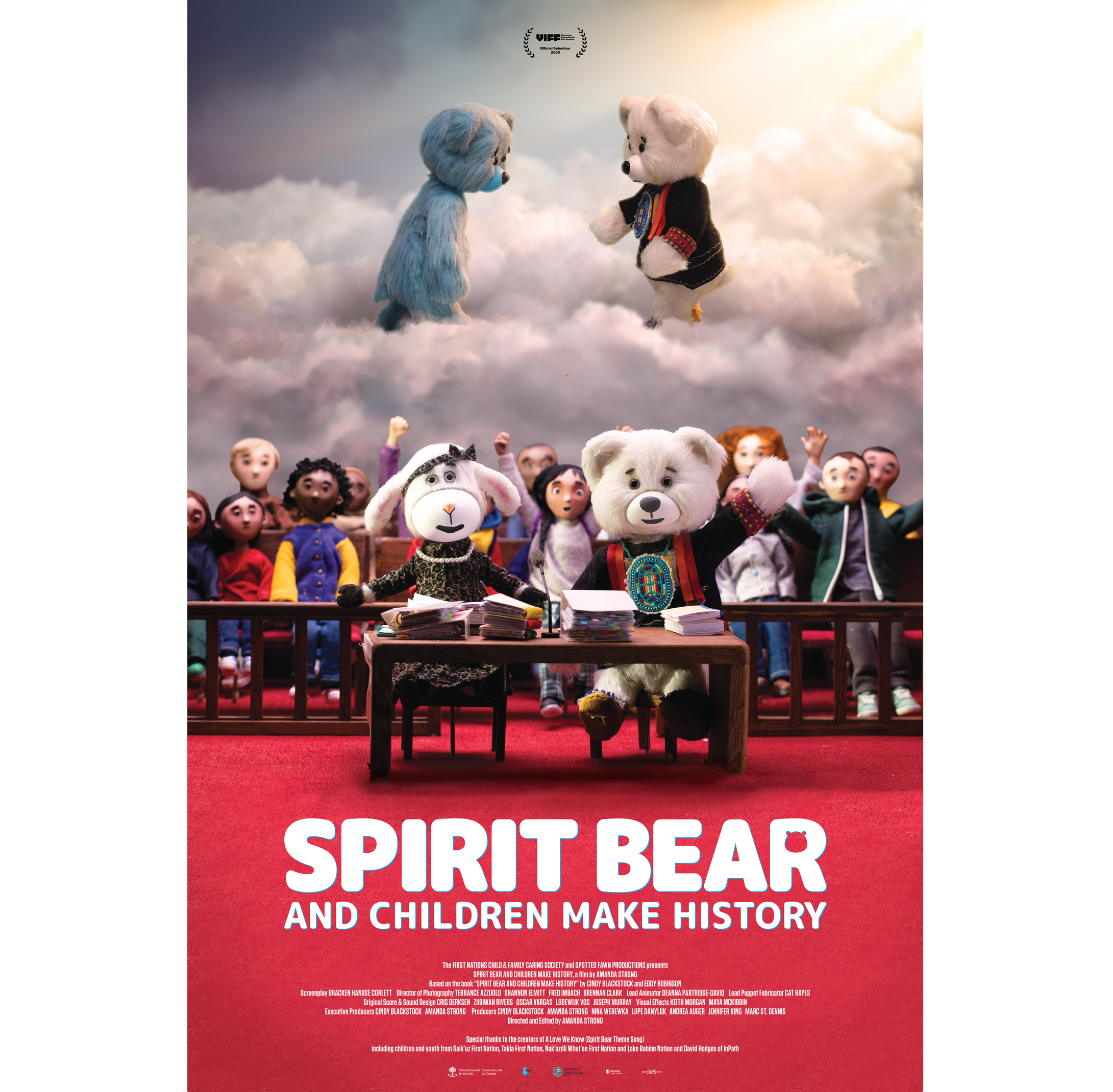 Spirit Bear and Children Make History is a stop-motion animation of the book by the same name adapted for screen by Michif animator Amanda Strong and Cindy Blackstock. It tells the story of Spirit Bear hopping a train to Ottawa and banding together with children and animals to end injustice against First Nations children at the Canadian Human Rights Tribunal. Based on a real case that resulted in Canada being ordered to end its discriminatory underfunding of services for First Nations kids, this film was made especially for children, but is essential viewing for all Canadians.